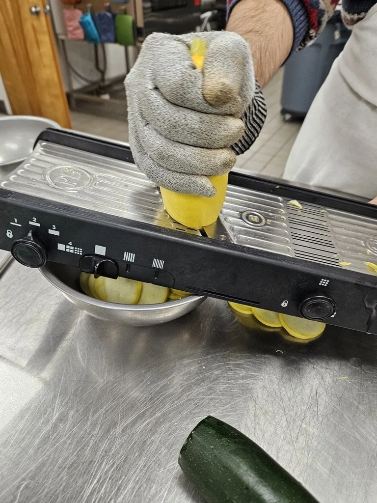 This week, I decided to make confit byaldi and realized that it would be much easier to use a mandolin slicer to cut my vegetables more quickly and ensure they were all the same size. This was actually my first time using this kitchen tool, but it certainly won’t be my last. The mandolin made slicing both consistent and precise, which greatly improved the overall preparation process.